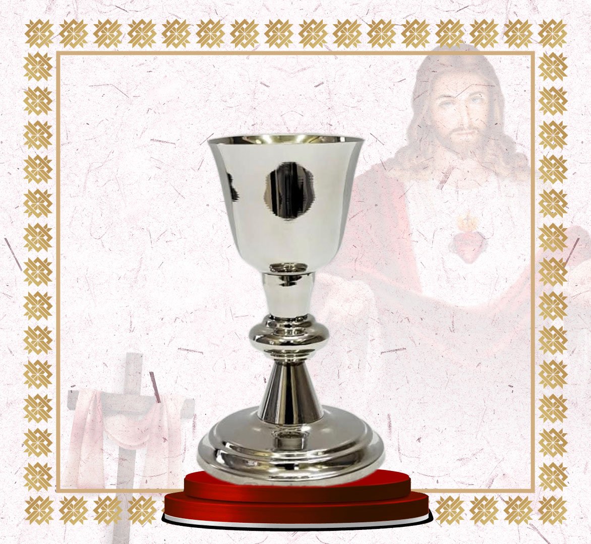 This finely crafted chalice embodies simplicity and reverence with its brilliant nickel-plated finish. Designed with a smooth, reflective surface, it symbolizes purity and devotion during the celebration of the Holy Eucharist. The balanced stem and broad base ensure stability and ease of handling during liturgical use. Made from durable brass and finished in nickel, it offers longevity and timeless beauty. Perfect for churches, chapels, and personal altars, this chalice adds a touch of refined elegance to every sacred celebration.