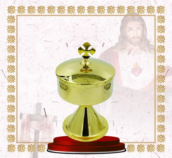This ciborium is beautifully crafted from high-quality brass and finished with a radiant gold plating, offering both elegance and durability. Its smooth, polished design features a secure lid topped with a cross, symbolizing the sacredness of the consecrated hosts it holds. The flared base ensures stability during liturgical use, while the classic golden shine adds dignity to any Eucharistic celebration. Perfect for parishes, chapels, and institutional worship, this ciborium is a timeless and essential vessel for Holy Communion.