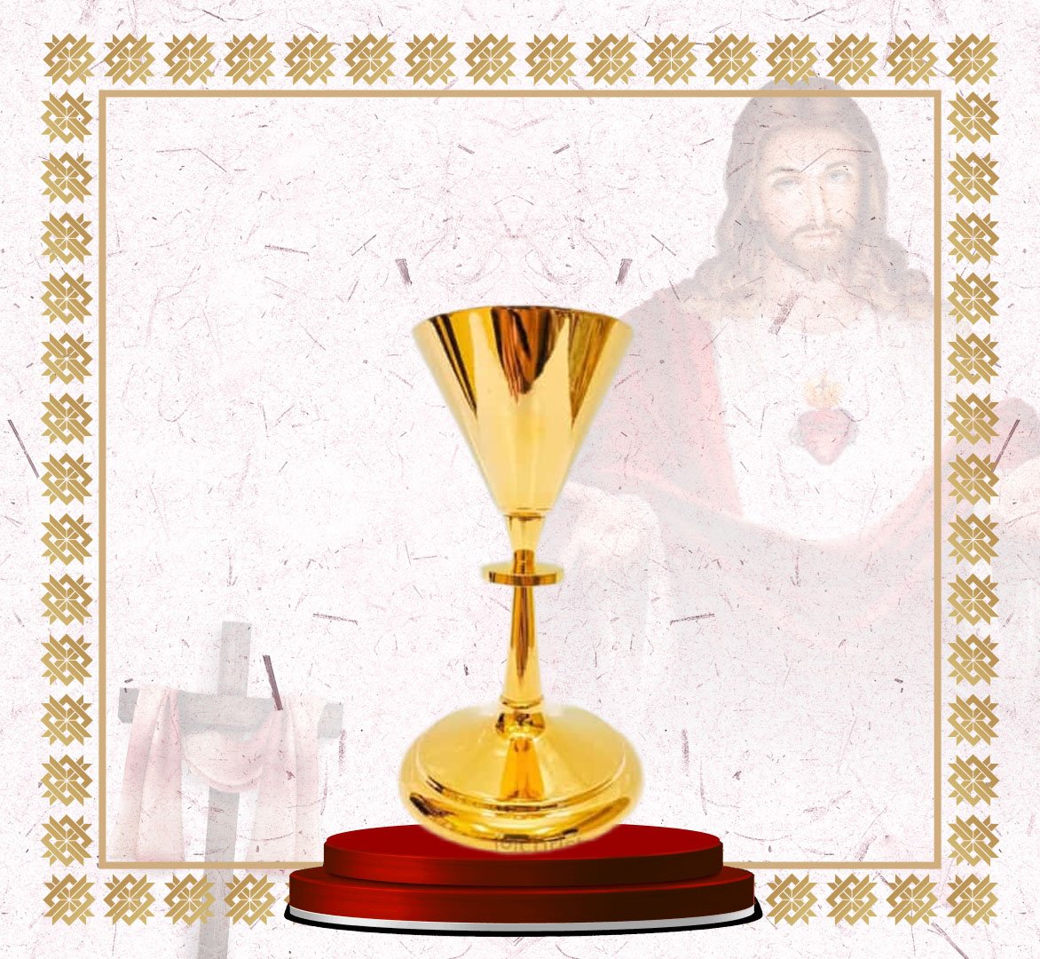 This classic tall gold chalice embodies simplicity and reverence in design. Its sleek, conical bowl and slender stem create a balanced, elegant silhouette ideal for church ceremonies. The highly polished gold finish enhances its sacred symbolism, reflecting purity and devotion. Built from durable liturgical-grade material, it ensures both beauty and longevity. Perfect for use during Holy Mass or as part of a ceremonial altar set.