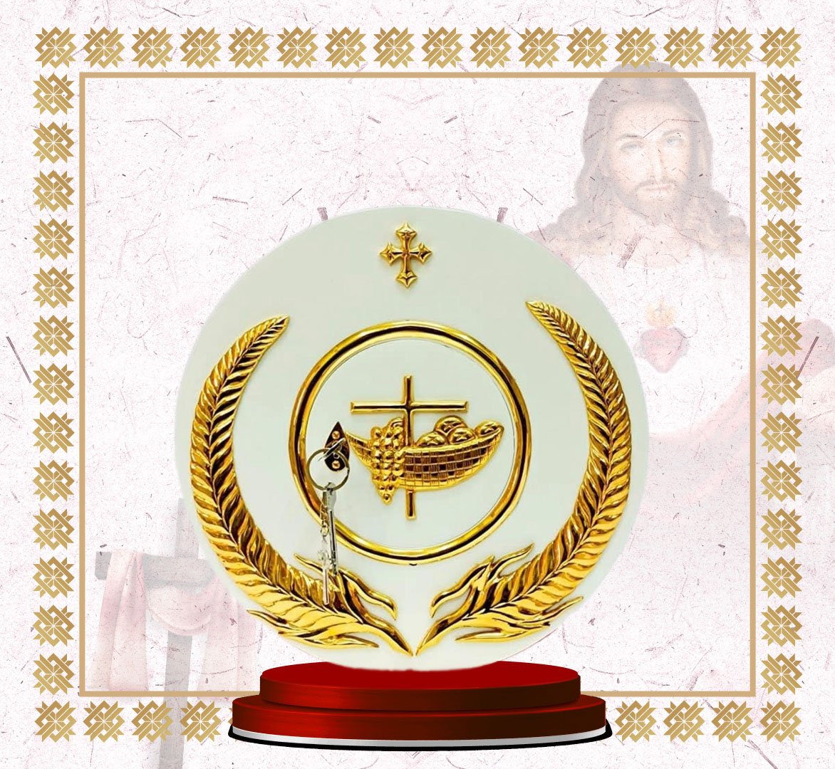 This exquisite tabernacle door showcases intricate golden craftsmanship with Eucharistic symbolism — the cross at the center, surrounded by wheat and vines that represent the Body and Blood of Christ. The central relief of bread and fish recalls Christ’s miracle of feeding the multitude, a timeless sign of divine providence. Complete with a locking mechanism and a subtle cross accent on top, it’s ideal for church sanctuaries, chapels, and Eucharistic reservation.