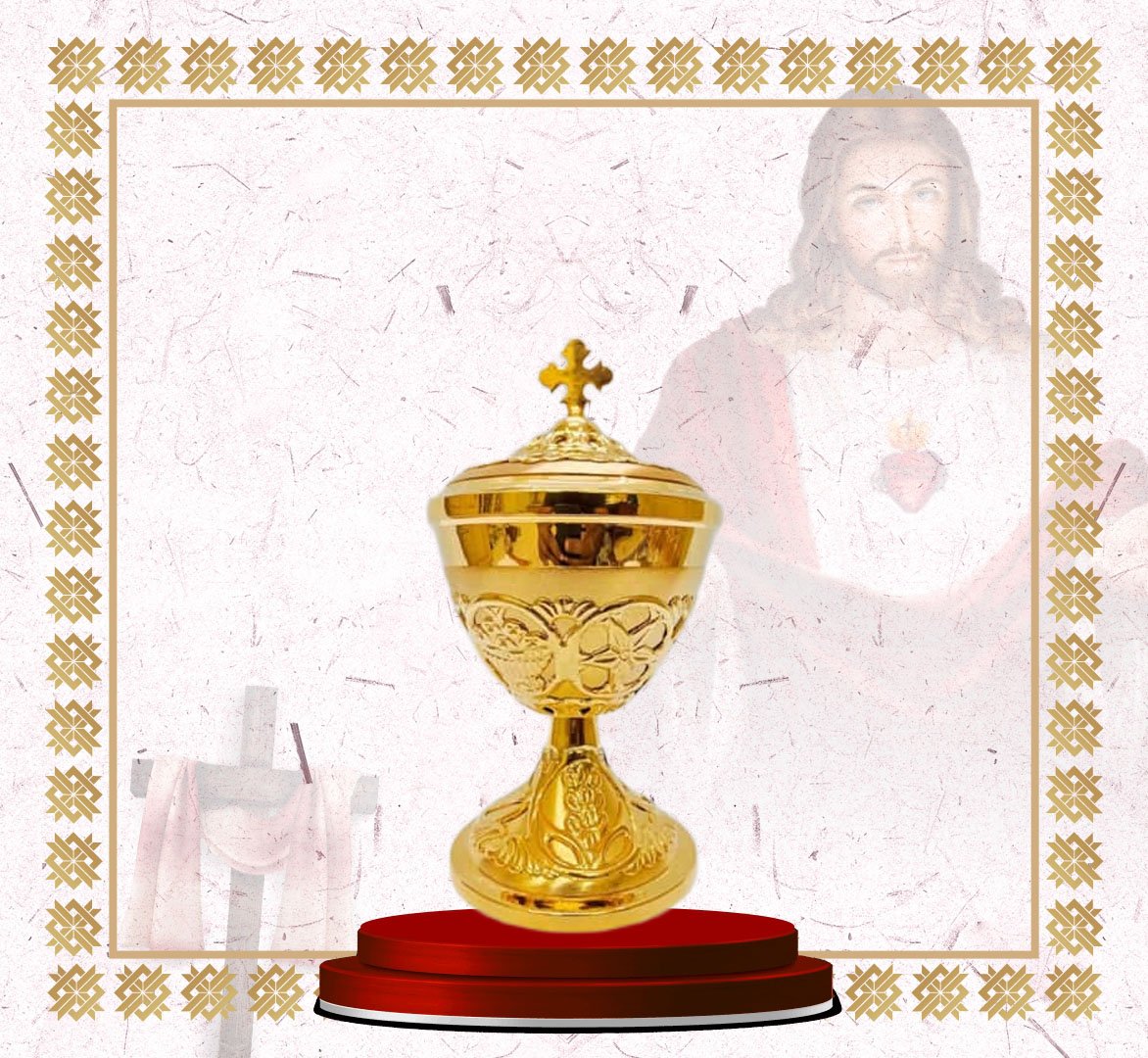 Crafted to embody sacred artistry, this ciborium shines with elegant floral engravings on its bowl and base. The cross-topped lid signifies the reverence of the Holy Eucharist, while its high-polish finish reflects divine radiance. Perfect for solemn celebrations, it blends durability and elegance for lasting liturgical beauty.
